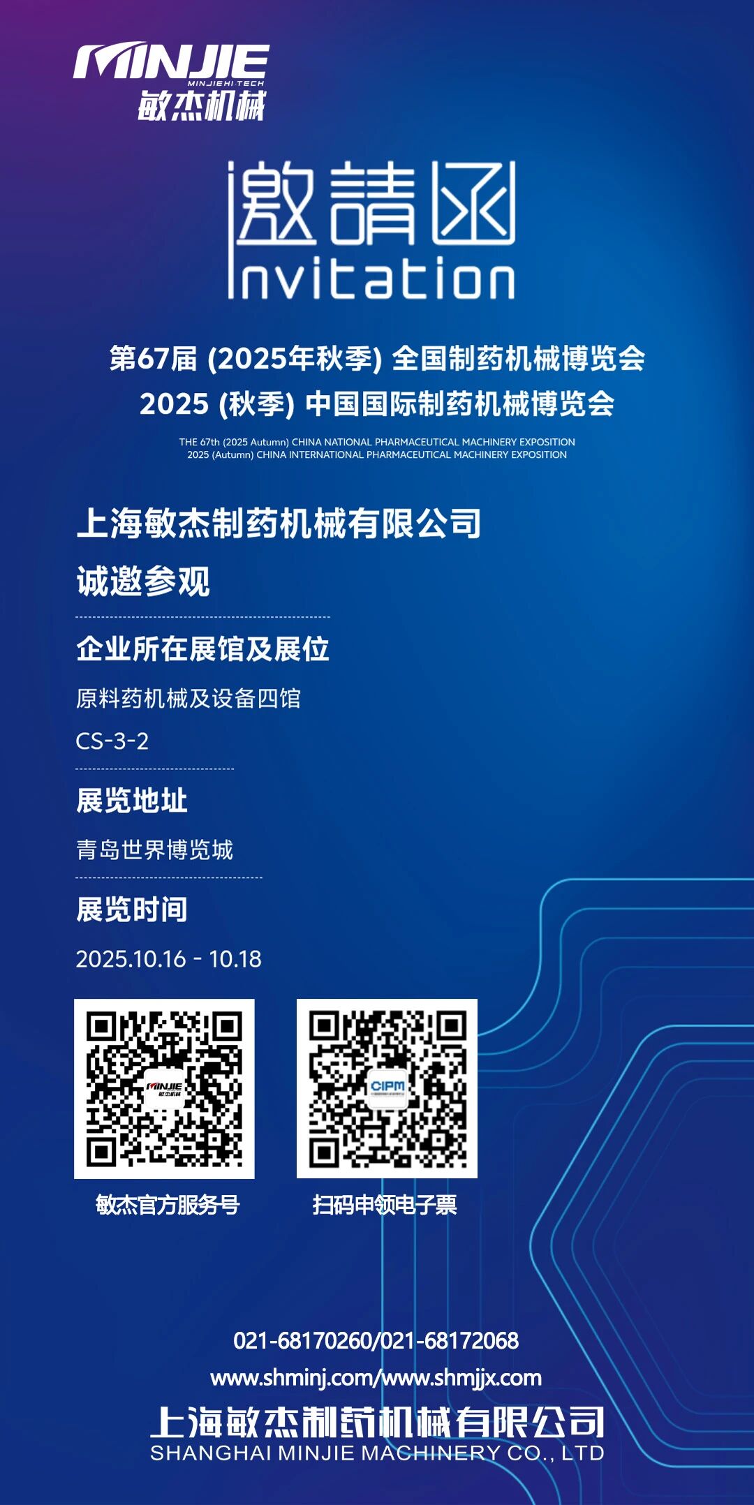 展會邀請|上海敏杰邀您共聚第67屆(2025年秋季)全國制藥機械